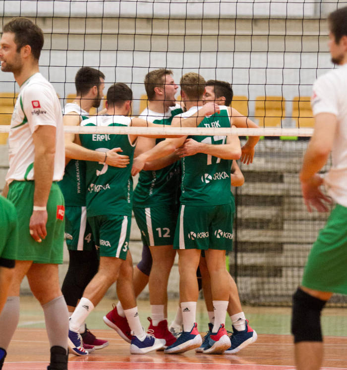 V tretjem setu se je zgodilo tako rekoč pričakovano, kot se navadno pripeti ekipi, ki brez težav dobi prva dva niza. Krkaši so premehko vstopili v niz, Prekmurcem na drugi strani pa ni preostalo drugega, kot iti na vse ali nič. In to se jim je še kako obrestovalo. Pri rezultatu 14:15 je Flisar z napadalno točko in dvema asoma poskrbel za mini serijo, Pulko pa je ustavil Kumra za 14:19. S tem naletom so gosti nadaljevali in po bloku Beravsa za 16:23 je bilo že jasno, da se bo tekma podaljšala v četrti niz. Krkaši so sicer poskusili niz obrniti v svojo korist, a zaostanek je bil prevelik. Niz je z uspešnim napadom zaključil Rojnik.