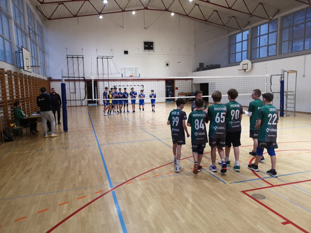 V telovadnici OŠ Bršljin v Novem mestu je bil v soboto, 6. januarja na sporedu še eden izmed mnogih odlično organiziranih turnirjev, tokrat v kategoriji dečkov. Mlada zasedba Krke se je v boj podala brez dveh standardnih članov in boljših posameznikov prve postave Roka Riflja in Martina Povšeta, ki sta bila primorana turnir izpustiti zaradi poškodbe. Zamenjala sta ju Kristjan Kleindienst in Martin Jakše Jr., ki. sta kljub mladosti uspešno nabirala izkušnje v prvi postavi. Tudi ostali fantje se niso ustrašili izziva in nasprotnikov. Hrabro so vstopili v tekmo proti kolegom iz Mokronoga. Začetek je bil bolj zadržan, v drugem delu niza pa je fantom uspelo vzpostaviti ravnovesje. Minila je začetna trema, z dobrimi servisi ter borbo v polju pa je fantom uspeli zbrati 18 točk. V drugem nizu so fantje iz Mokronoga zaigrali precej bolje in Krki prepustili vsega 12 točk.