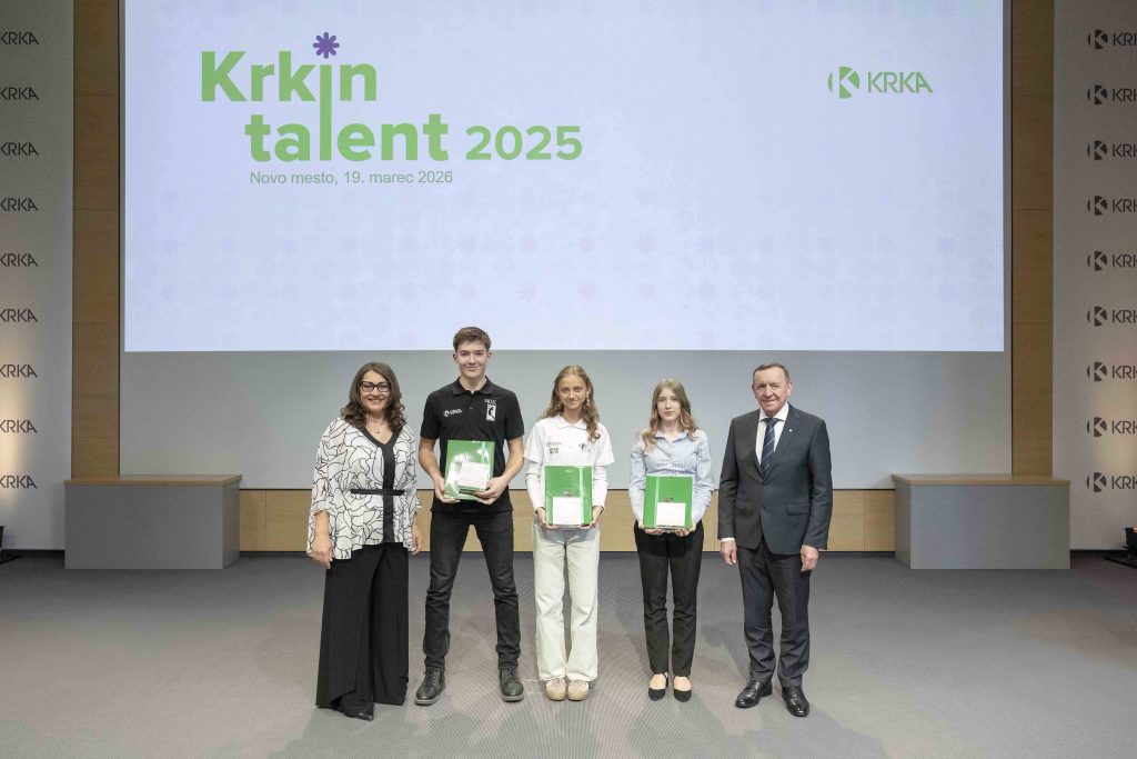 Novo mesto, 19. marec 2026 – Sporočilo za javnost – Farmacevtska družba Krka z 20. srečanjem s svojimi sponzoriranci nadaljuje tradicijo podpiranja športa in kulture. Letošnji dogodek je zaznamovala tema vzorništva, ki je eden od ciljev našega sodelovanja s športnimi in kulturnimi ustanovami. Naziv Krkin talent, ki ga mladim podeljujemo od leta 2017, so letos prejeli Lara Balažic iz Atletskega kluba Krka Novo mesto, Leja Strgar iz Novomeškega simfoničnega orkestra in Pihalnega orkestra Krka, Peter Bregar iz Moškega odbojkarskega kluba Krka in Lenart Dejak iz Kolesarskega kluba Adria Mobil Novo mesto. Podeljenih je bilo še 10 zahval mentorjem in zaslužnim sodelavcem ustanov, priznanja za dosežke pa je prejelo 13 mladih, ki so kandidirali za naziv Krkin talent. Skupno je tako Krka podelila že 32 nazivov Krkin talent, 132 priznanj in 59 zahval.